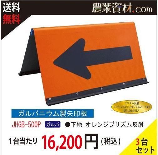 【安全興業】ガルバニウム製矢印板 JHGB-500P オレンジプリズム反射/黒矢印 取手付 (3台セット・送料無料)