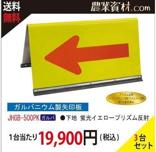 • >> 【安全興業】ガルバニウム製矢印板 JHGB-500PK 蛍光黄プリズム反射/赤矢印 取手付 (3台セット・送料無料)